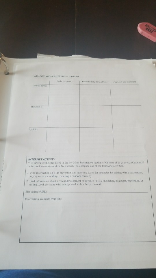 Solved Wellness Worksheet 101 Continued Early Symptoms Chegg Com