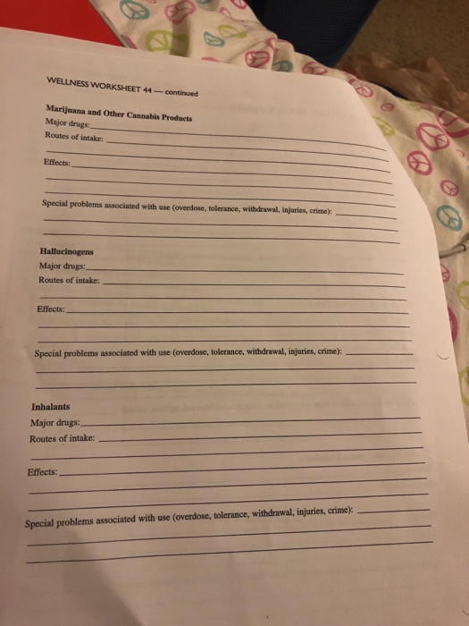 Solved Wellness Worksheet 44 Continued Marijuana And Othe Chegg Com